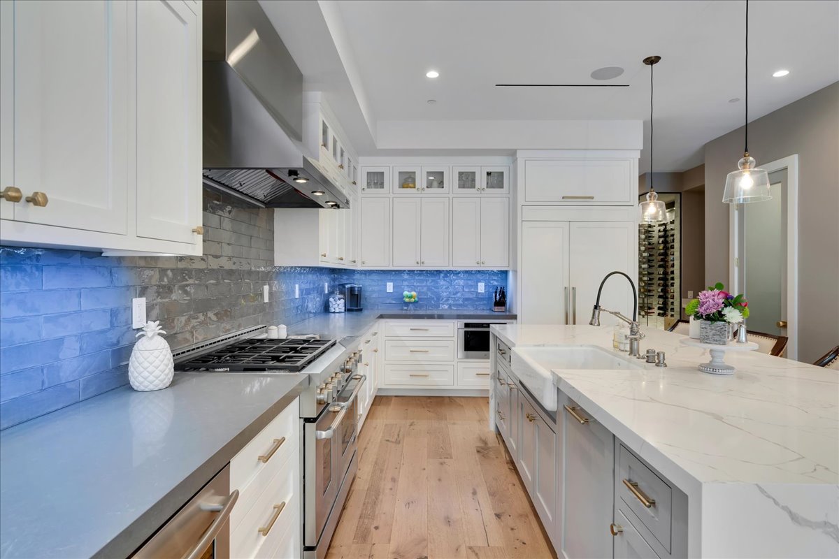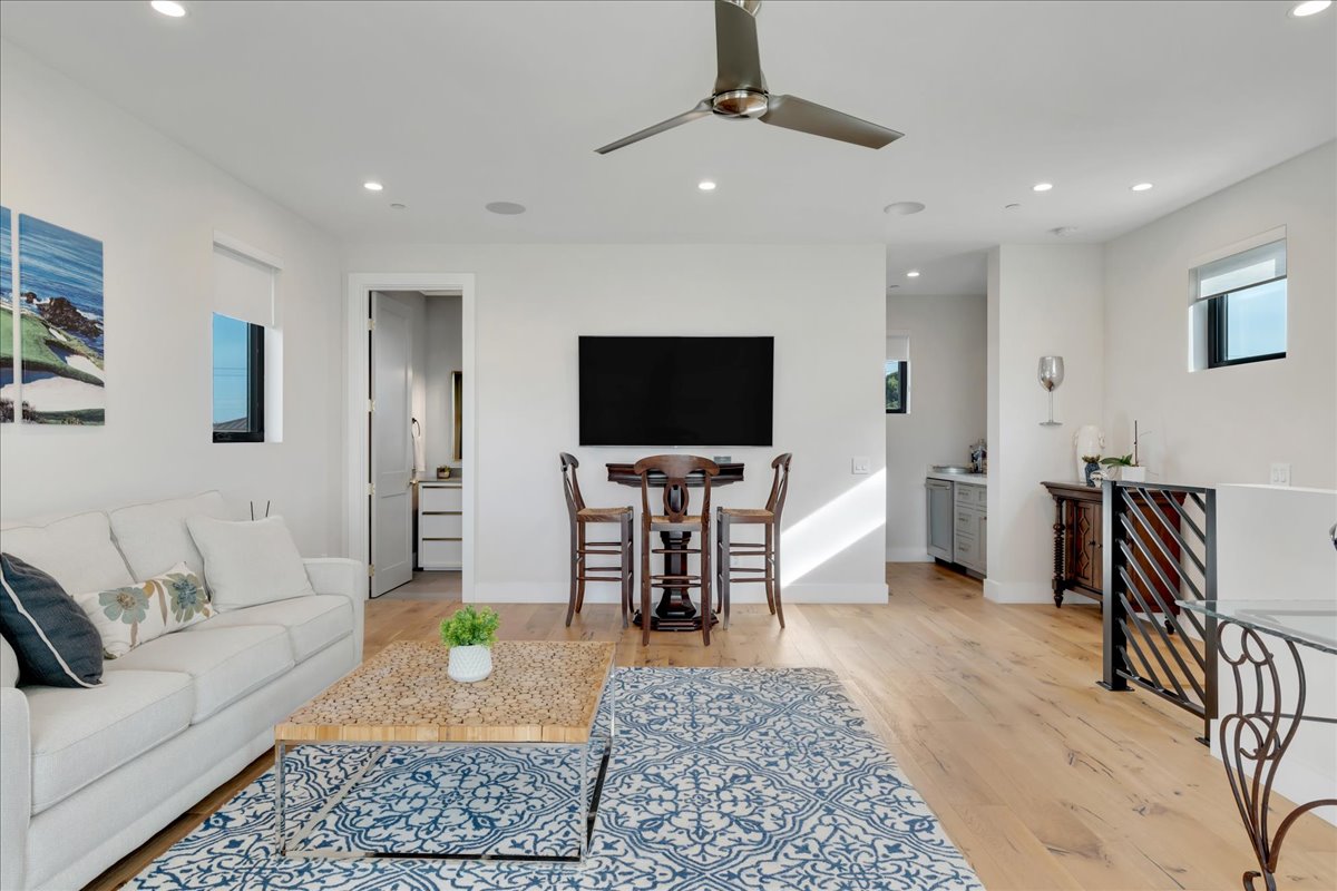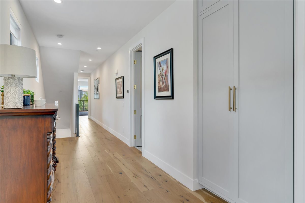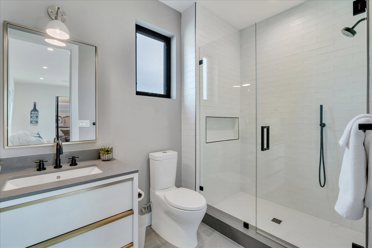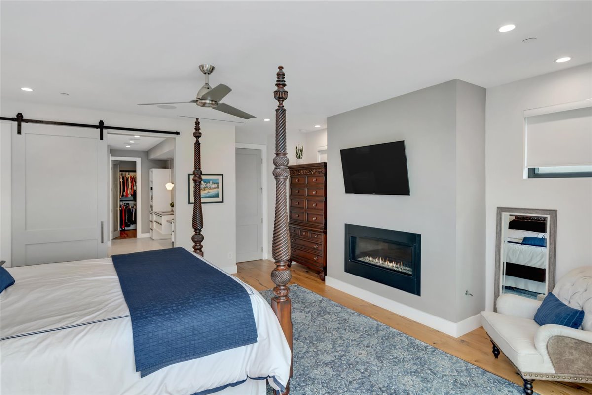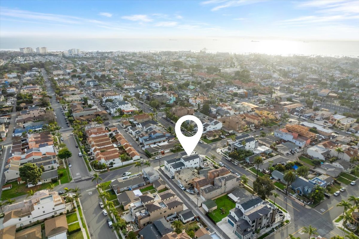 A newly built Downtown Huntington Beach home offers a Coastal Contemporary Farmhouse feel with a large front patio featuring a built-in fire pit, artificial turf, lighted landscape, and a gas BBQ island. Enjoy a short walk to Main Street for dining, bars, the farmer’s market, and live entertainment. Only ten blocks directly down Huntington Street to the beach. The first floor offers Bi-fold doors to open up the entertaining outdoor area to the living and kitchen space. Gray quartz countertops in the kitchen and designer gray backsplash surround the 6-burner gas stove with a warming feature and double oven. The marble kitchen island is over 10 x 4 feet and is an entertaining highlight with pendant lighting and a large farmhouse sink. A large walk-in pantry offers an abundance of storage. Uniquely, this home has a first-floor bathroom with a walk-in shower and a den/office, which currently has a Murphy bed. The bar area off the den also features a wine room with custom lighting and space for 80 bottles! The Master bedroom is located on the second floor with a gas fireplace and balcony. The thoughtfully laid-out Master bathroom includes modern fixtures, a huge glass-encased shower with two shower heads, separate tub, and tons of counter space. Down the hall is a laundry room with a sink and storage. Two more en suites are located on the second floor, one with a 3/4 bath and one with a full bath. Enjoy additional outdoor living on the third floor with a spacious private patio to watch the 4th of July fireworks and the Pacific Air Show. The third-floor bonus room offers a wet bar, beverage refrigerator, and another 3/4 bath. The sound system throughout, sleek air conditioning/heating vents, ceiling fans, tankless water heater, Nest thermostat, and MyQ garage door opener are just a few of the many thoughtful upgrades. Enjoy beach living at its best!
